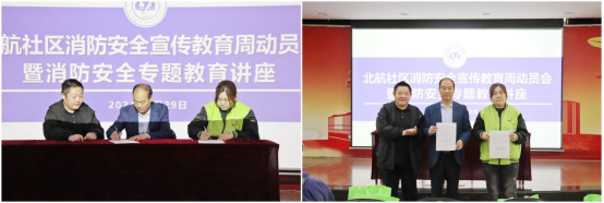 为进一步加强社区消防安全管理,压实安全责任,会上,社区办、社区居委会与北京市燃气集团有限责任公司北航服务中心、超市发北航店、吕梁市曹操到家政有限公司北航工作站、北京丰西华盛社区服务中心第一分部、北京兴航福利印刷厂等五家驻社区公共服务单位负责人签订了安全责任书。